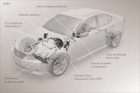 sensor de ángulo de giro y aceleración transversal: proporciona información sobre desplazamientos del vehículo alrededor de su eje vertical y desplazamientos y fuerzas laterales, es decir, cual es el comportamiento real del vehículo y si está comenzando a derrapar y desviándose de la trayectoria deseada por el conductor.
